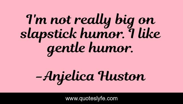 This page presents the quote "I'm not really big on slapstick humor. I like gentle humor.". Author of this quote is Anjelica Huston. This quote is about gentle, like, big,.