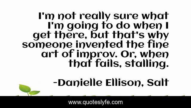 This page presents the quote "I'm not really sure what I'm going to do when I get there, but that's why someone invented the fine art of improv. Or, when that fails, stalling.". Author of this quote is Danielle Ellison, Salt. This quote is about magic, young-adult, witches,.