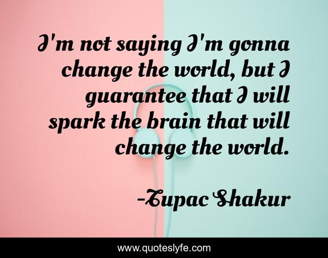 This page presents the quote "I'm not saying I'm gonna change the world, but I guarantee that I will spark the brain that will change the world.". Author of this quote is Tupac Shakur. This quote is about enthusiasm, hiphop, music, inspirational,.