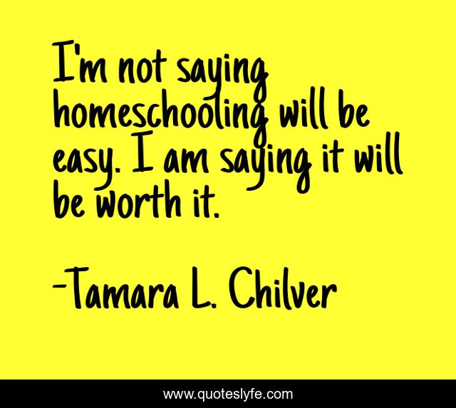 This page presents the quote "I'm not saying homeschooling will be easy. I am saying it will be worth it.". Author of this quote is Tamara L. Chilver. This quote is about homekeeper, christian, not-for-the-faint-at-heart, homeschool, homeschool-authors, homeschool-mom-encouragement, inspirational, grace-filled-homeschool, enthusiasm,.
