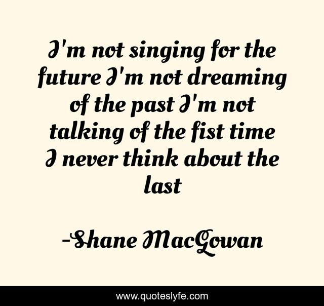 This page presents the quote "I'm not singing for the future I'm not dreaming of the past I'm not talking of the fist time I never think about the last". Author of this quote is Shane MacGowan. This quote is about irish, skinhead, the-pogues, punk, british, real-life, inspirational, enthusiasm, yes,.