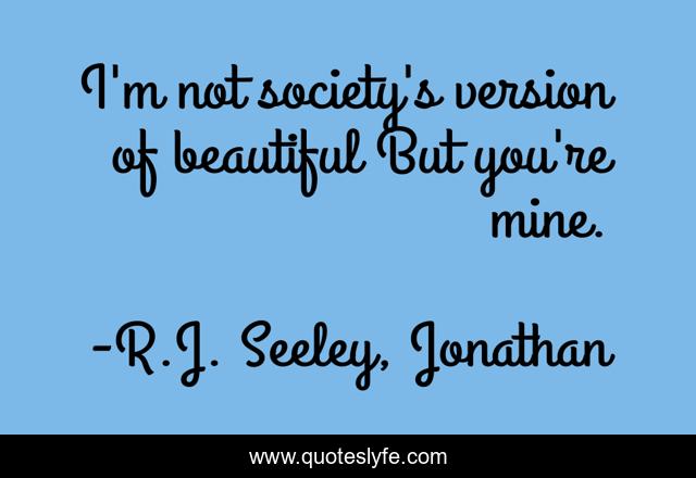 This page presents the quote "I'm not society's version of beautiful But you're mine.". Author of this quote is R.J. Seeley, Jonathan. This quote is about romance, lgbt, love, beauty, affection,.