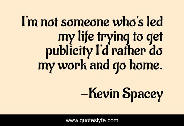 This page presents the quote "I'm not someone who's led my life trying to get publicity I'd rather do my work and go home.". Author of this quote is Kevin Spacey. This quote is about life, work, my life,.