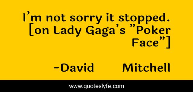 This page presents the quote "I’m not sorry it stopped. [on Lady Gaga’s ”Poker Face”]". Author of this quote is David Mitchell. This quote is about taste, humor, music, grumpiness,.