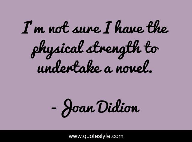 This page presents the quote "I'm not sure I have the physical strength to undertake a novel.". Author of this quote is Joan Didion. This quote is about sure, physical strength,.