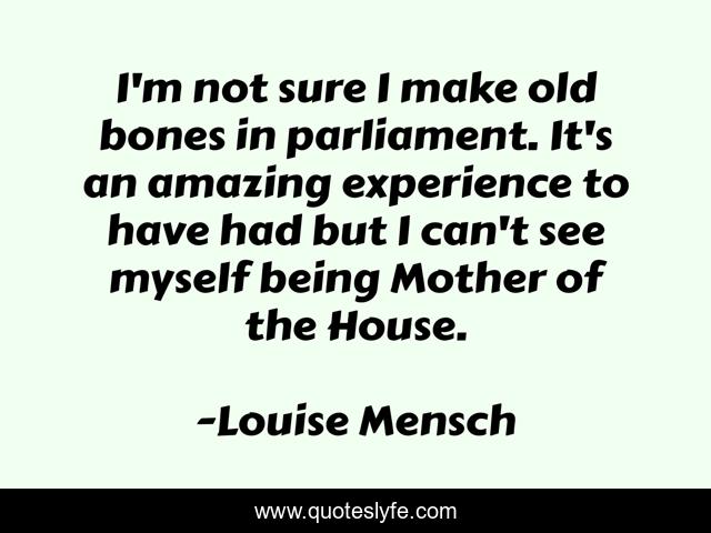 I'm not sure I make old bones in parliament. It's an amazing experience to have had but I can't see myself being Mother of the House.
