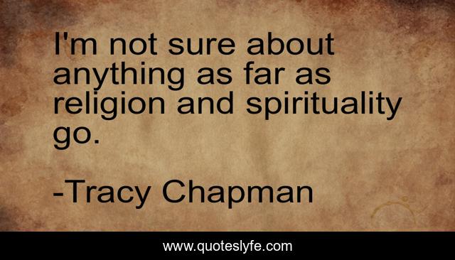 This page presents the quote "I'm not sure about anything as far as religion and spirituality go.". Author of this quote is Tracy Chapman. This quote is about far, sure, anything,.