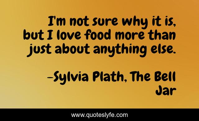 This page presents the quote "I'm not sure why it is, but I love food more than just about anything else.". Author of this quote is Sylvia Plath, The Bell Jar. .