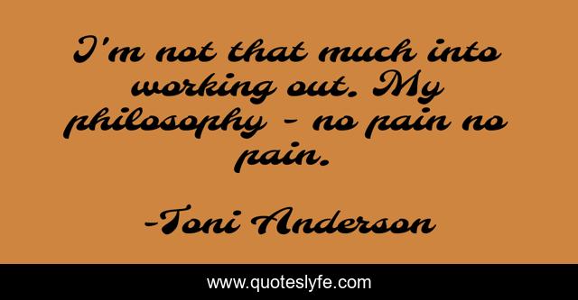 This page presents the quote "I'm not that much into working out. My philosophy - no pain no pain.". Author of this quote is Toni Anderson. .