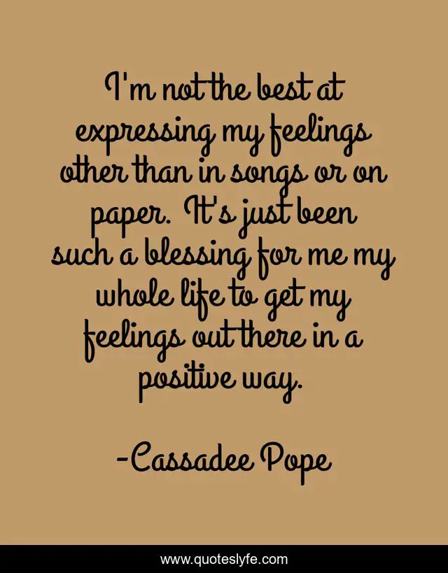 This page presents the quote "I'm not the best at expressing my feelings other than in songs or on paper. It's just been such a blessing for me my whole life to get my feelings out there in a positive way.". Author of this quote is Cassadee Pope. This quote is about me, life, best,.
