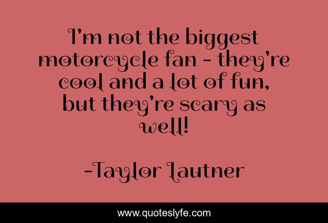 This page presents the quote "I'm not the biggest motorcycle fan - they're cool and a lot of fun, but they're scary as well!". Author of this quote is Taylor Lautner. This quote is about fun, scary, motorcycle,.