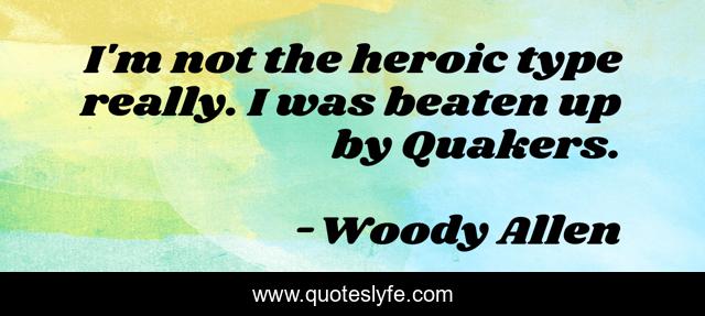 This page presents the quote "I'm not the heroic type really. I was beaten up by Quakers.". Author of this quote is Woody Allen. .