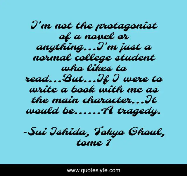 "Sui Ishida, Tokyo Ghoul, tome 1 Quotes." Quoteslyfe.com, 2025. Fri. 05 Dec. 2025. <https://www.quoteslyfe.com/quote/I-m-not-the-protagonist-of-a-156089>.