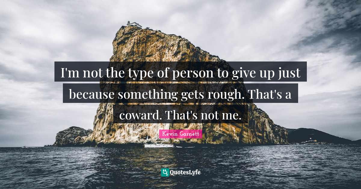 This page presents the quote "I'm not the type of person to give up just because something gets rough. That's a coward. That's not me.". Author of this quote is Kevin Garnett. This quote is about rough, giving up, type, coward,.