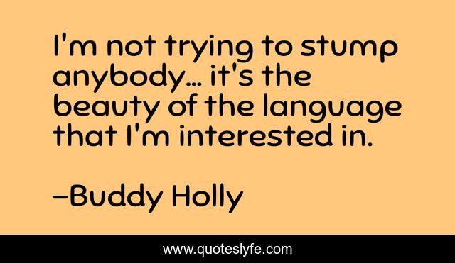 This page presents the quote "I'm not trying to stump anybody... it's the beauty of the language that I'm interested in.". Author of this quote is Buddy Holly. This quote is about trying, anybody, language,.