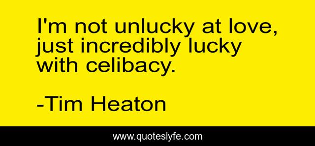 This page presents the quote "I'm not unlucky at love, just incredibly lucky with celibacy.". Author of this quote is Tim Heaton. This quote is about love, unrequited-love, affection,.