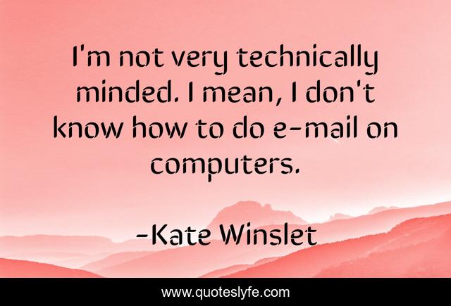 This page presents the quote "I'm not very technically minded. I mean, I don't know how to do e-mail on computers.". Author of this quote is Kate Winslet. This quote is about very, mean,.
