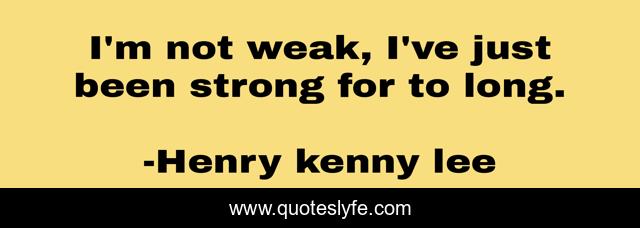 This page presents the quote "I'm not weak, I've just been strong for to long.". Author of this quote is Henry kenny lee. This quote is about weakness, strength,.