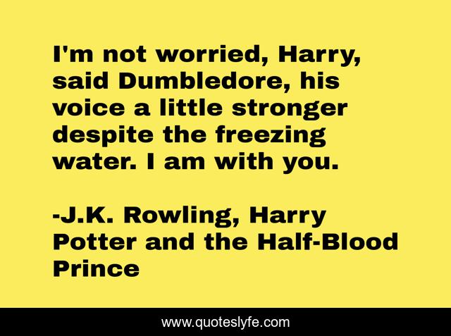 This page presents the quote "I'm not worried, Harry, said Dumbledore, his voice a little stronger despite the freezing water. I am with you.". Author of this quote is J.K. Rowling, Harry Potter and the Half-Blood Prince. This quote is about harry-potter, j-k-rowling, half-blood-prince, chapter-26, page-578, albus-dumbledore,.