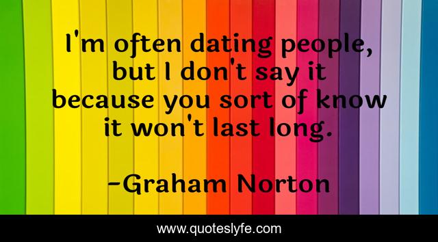 This page presents the quote "I'm often dating people, but I don't say it because you sort of know it won't last long.". Author of this quote is Graham Norton. This quote is about long, people,.