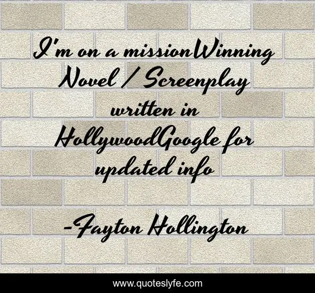 "Fayton Hollington Quotes." Quoteslyfe.com, 2025. Sat. 06 Dec. 2025. <https://www.quoteslyfe.com/quote/I-m-on-a-missionWinning-Novel-Screenplay-38297>.