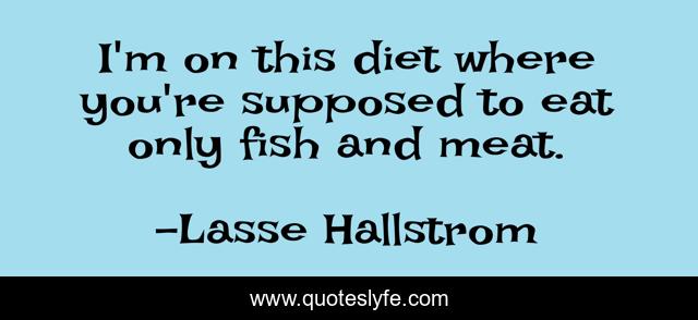 This page presents the quote "I'm on this diet where you're supposed to eat only fish and meat.". Author of this quote is Lasse Hallstrom. This quote is about fish, meat,.