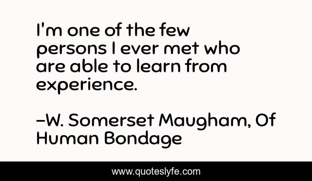 This page presents the quote "I'm one of the few persons I ever met who are able to learn from experience.". Author of this quote is W. Somerset Maugham, Of Human Bondage. This quote is about experience, learn,.