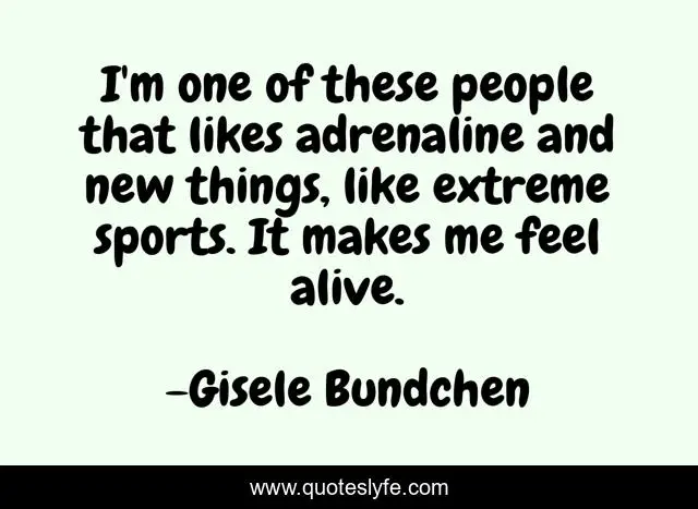 This page presents the quote "I'm one of these people that likes adrenaline and new things, like extreme sports. It makes me feel alive.". Author of this quote is Gisele Bundchen. This quote is about me, new things, people,.