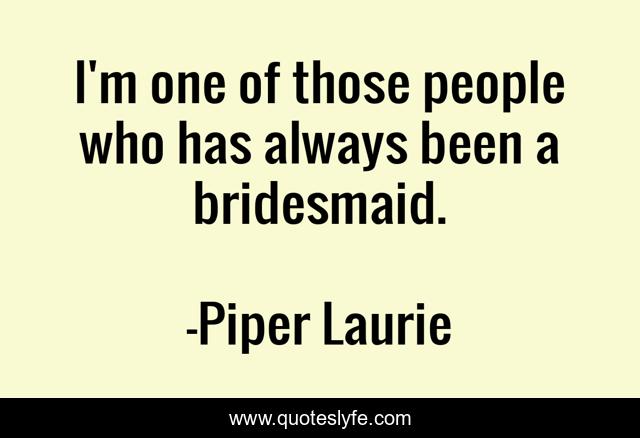 This page presents the quote "I'm one of those people who has always been a bridesmaid.". Author of this quote is Piper Laurie. This quote is about always, been, people,.