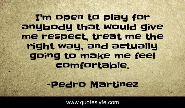 This page presents the quote "I'm open to play for anybody that would give me respect, treat me the right way, and actually going to make me feel comfortable.". Author of this quote is Pedro Martinez. This quote is about me, play, treat,.