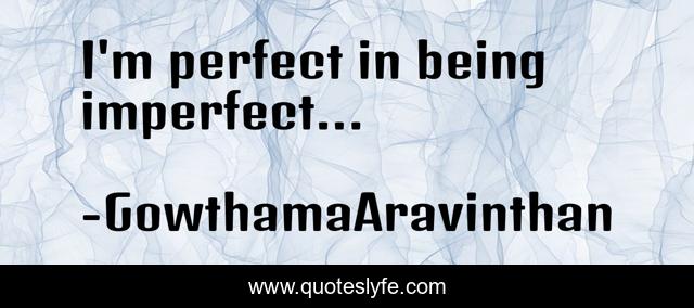 This page presents the quote "I'm perfect in being imperfect...". Author of this quote is GowthamaAravinthan. .