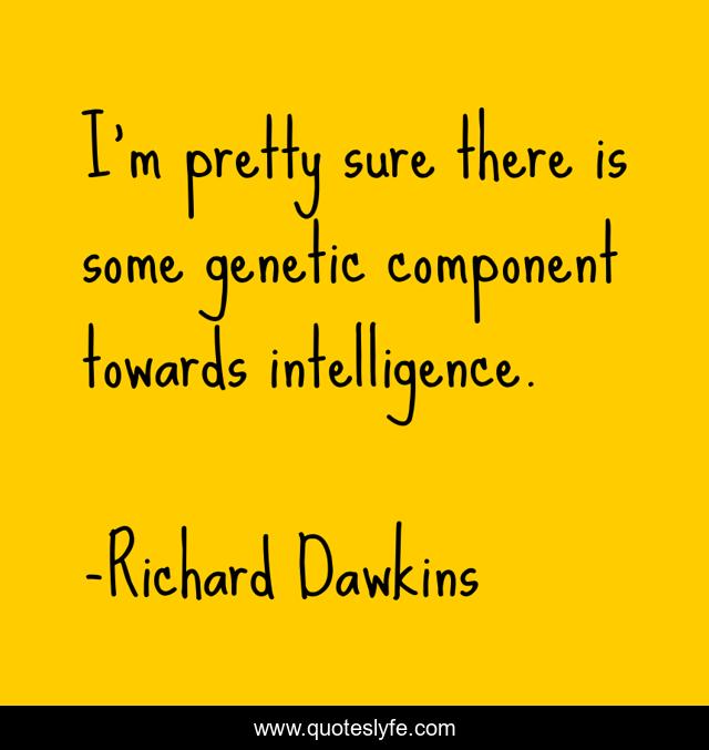 This page presents the quote "I'm pretty sure there is some genetic component towards intelligence.". Author of this quote is Richard Dawkins. This quote is about sure, pretty,.