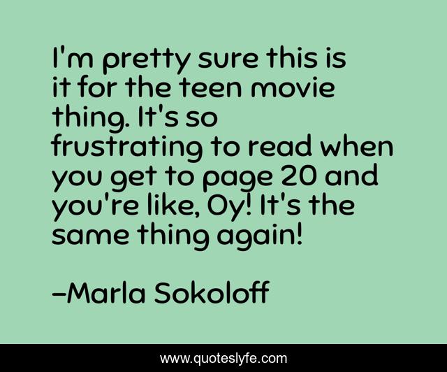 This page presents the quote "I'm pretty sure this is it for the teen movie thing. It's so frustrating to read when you get to page 20 and you're like, Oy! It's the same thing again!". Author of this quote is Marla Sokoloff. This quote is about page, same,.