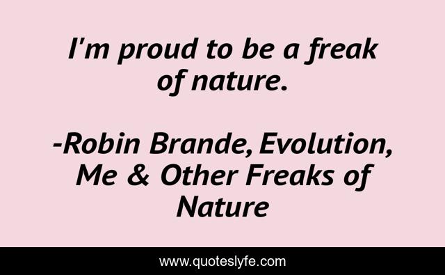 This page presents the quote "I'm proud to be a freak of nature.". Author of this quote is Robin Brande, Evolution, Me & Other Freaks of Nature. This quote is about freaks, nature,.