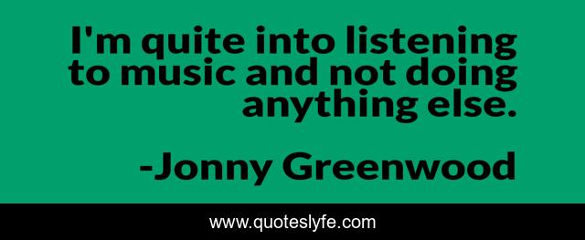 This page presents the quote "I'm quite into listening to music and not doing anything else.". Author of this quote is Jonny Greenwood. This quote is about listening, anything,.