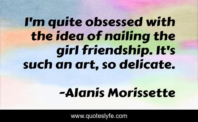 This page presents the quote "I'm quite obsessed with the idea of nailing the girl friendship. It's such an art, so delicate.". Author of this quote is Alanis Morissette. This quote is about girl, art, idea,.