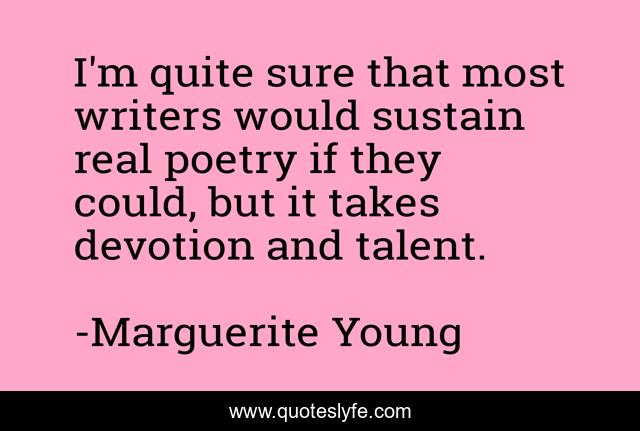 This page presents the quote "I'm quite sure that most writers would sustain real poetry if they could, but it takes devotion and talent.". Author of this quote is Marguerite Young. This quote is about real, talent, devotion,.