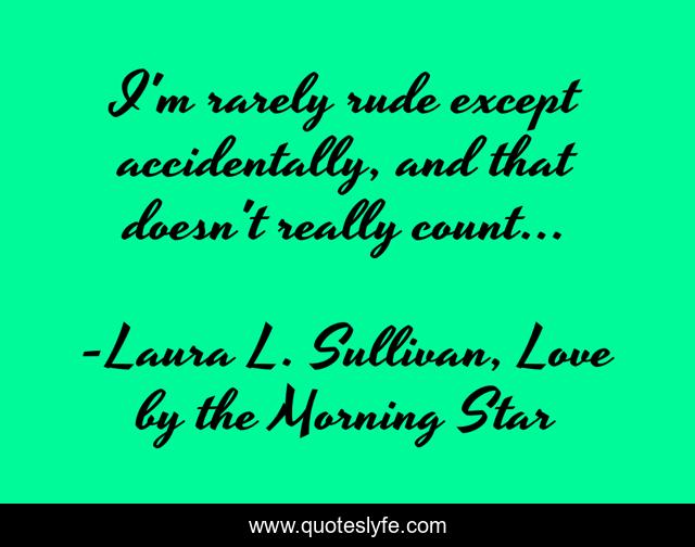"Laura L. Sullivan, Love by the Morning Star Quotes." Quoteslyfe.com, 2025. Fri. 05 Dec. 2025. <https://www.quoteslyfe.com/quote/I-m-rarely-rude-except-accidentally-and-149652>.