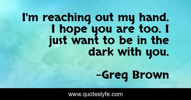 This page presents the quote "I'm reaching out my hand. I hope you are too. I just want to be in the dark with you.". Author of this quote is Greg Brown. .