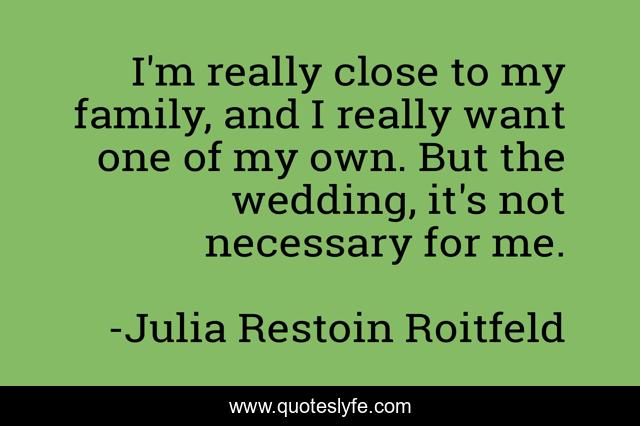 This page presents the quote "I'm really close to my family, and I really want one of my own. But the wedding, it's not necessary for me.". Author of this quote is Julia Restoin Roitfeld. This quote is about me, family,.