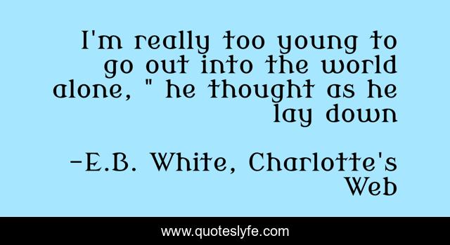 This page presents the quote "I'm really too young to go out into the world alone, " he thought as he lay down". Author of this quote is E.B. White, Charlotte's Web. .