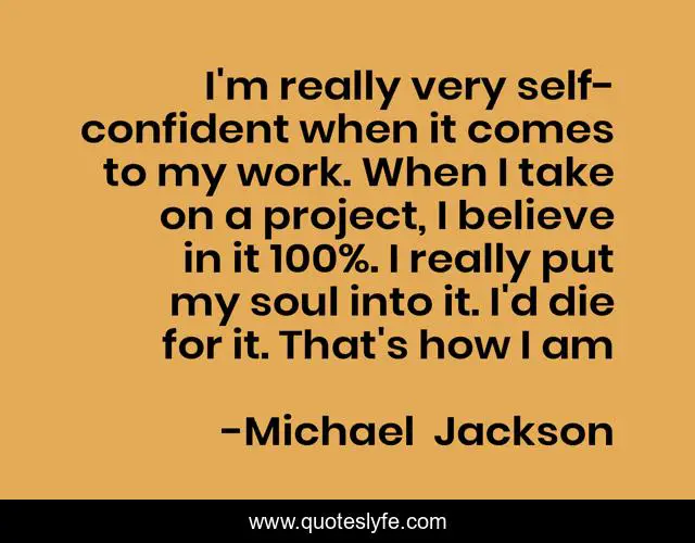 This page presents the quote "I'm really very self-confident when it comes to my work. When I take on a project, I believe in it 100%. I really put my soul into it. I'd die for it. That's how I am". Author of this quote is Michael Jackson. .
