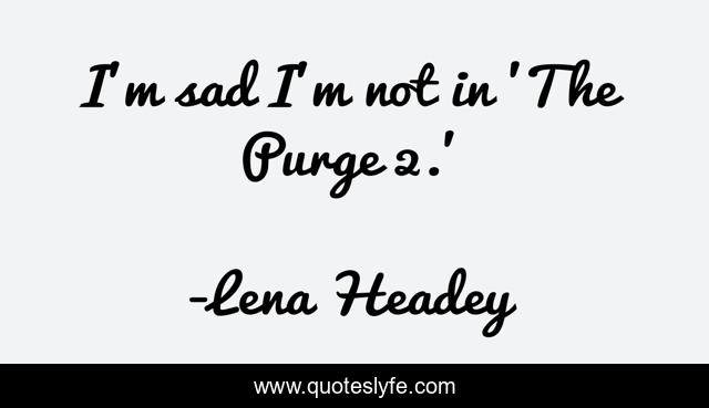This page presents the quote "I'm sad I'm not in 'The Purge 2.'". Author of this quote is Lena Headey. .