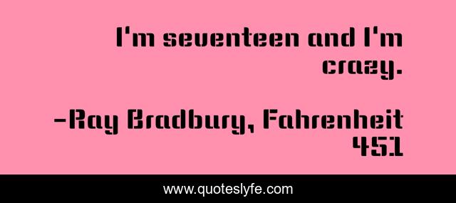 "Ray Bradbury, Fahrenheit 451 Quotes." Quoteslyfe.com, 2025. Mon. 08 Dec. 2025. <https://www.quoteslyfe.com/quote/I-m-seventeen-and-I-m-crazy-238231>.