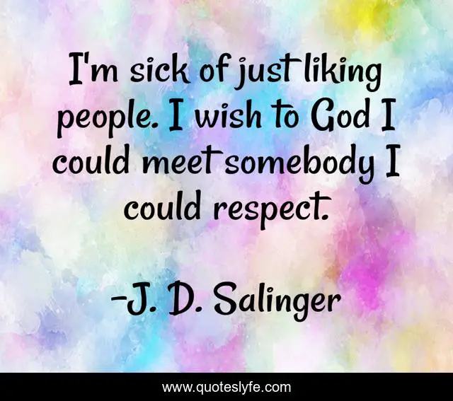 This page presents the quote "I'm sick of just liking people. I wish to God I could meet somebody I could respect.". Author of this quote is J. D. Salinger. This quote is about god, people, wish,.