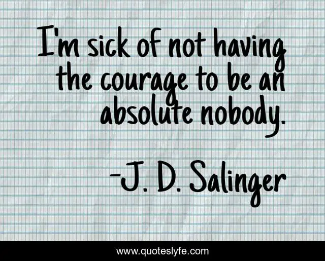 This page presents the quote "I'm sick of not having the courage to be an absolute nobody.". Author of this quote is J. D. Salinger. This quote is about nobody, having, sick,.