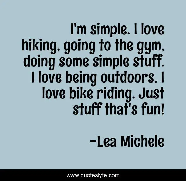 This page presents the quote "I'm simple. I love hiking, going to the gym, doing some simple stuff. I love being outdoors, I love bike riding. Just stuff that's fun!". Author of this quote is Lea Michele. This quote is about simple, fun, bike,.
