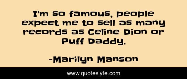 This page presents the quote "I'm so famous, people expect me to sell as many records as Celine Dion or Puff Daddy.". Author of this quote is Marilyn Manson. This quote is about me, famous people, people,.