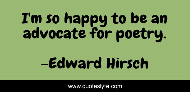 This page presents the quote "I'm so happy to be an advocate for poetry.". Author of this quote is Edward Hirsch. This quote is about advocate, happy,.