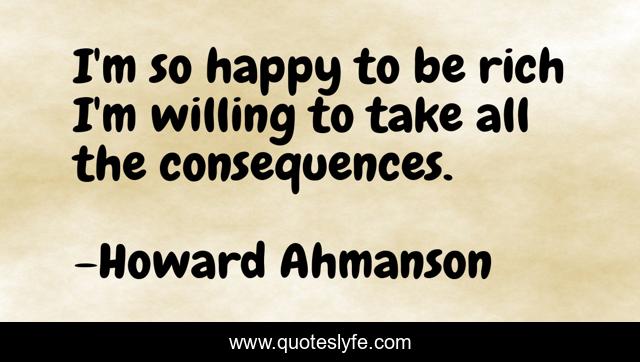 This page presents the quote "I'm so happy to be rich I'm willing to take all the consequences.". Author of this quote is Howard Ahmanson. .